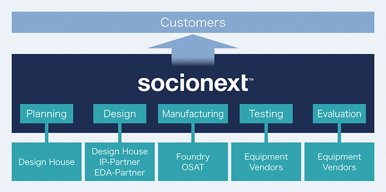 Socionext在ASIC和ASSP开发方面有多年经验,可以作为客户的“虚拟SoC部门”,实现客户所需的定制化SoC。